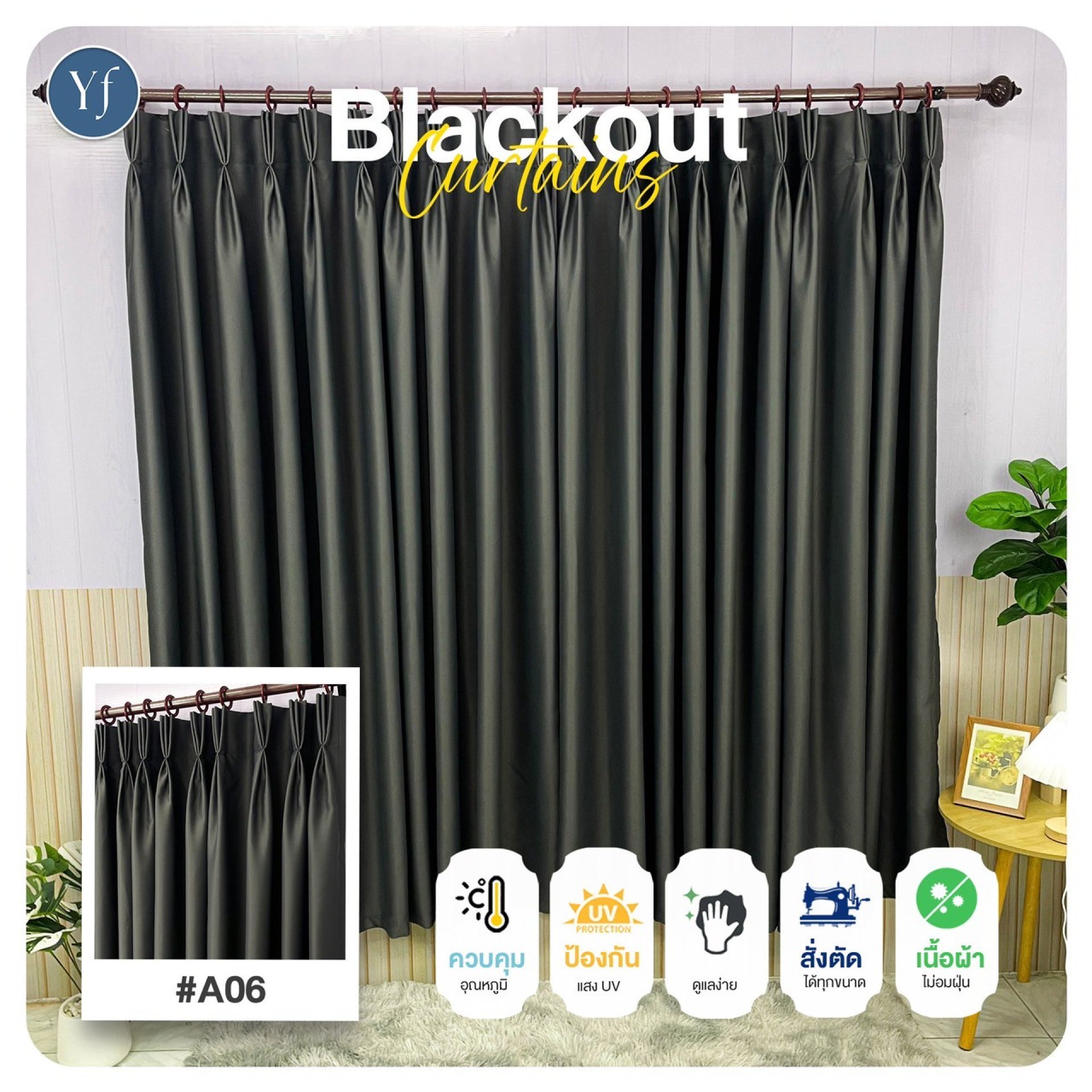รีวิวผ้าม่านจีบ สีเทาเข้ม รหัส A6