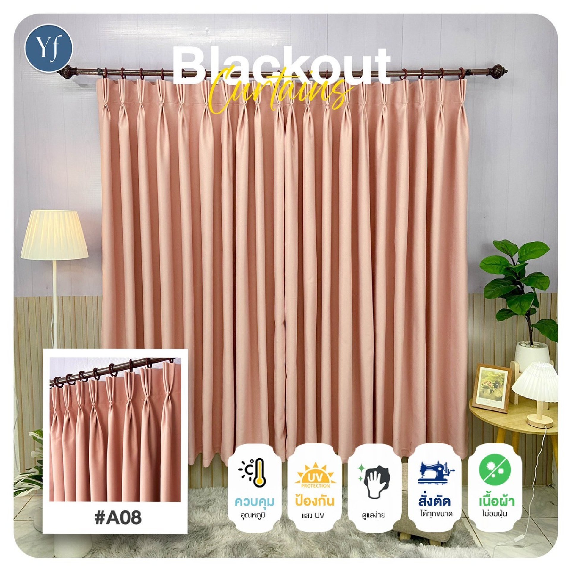 ผ้าม่านจีบสีชมพูอ่อน รหัส A8 สามารถ สั่งตัดได้ตามขนาดหน้าต่างหรือประตู มีทั้งแบบตาไก่, หัวเจาะ, หรือแบบซับในเพื่อเพิ่มคุณสมบัติในการกันแสงและกันความร้อน