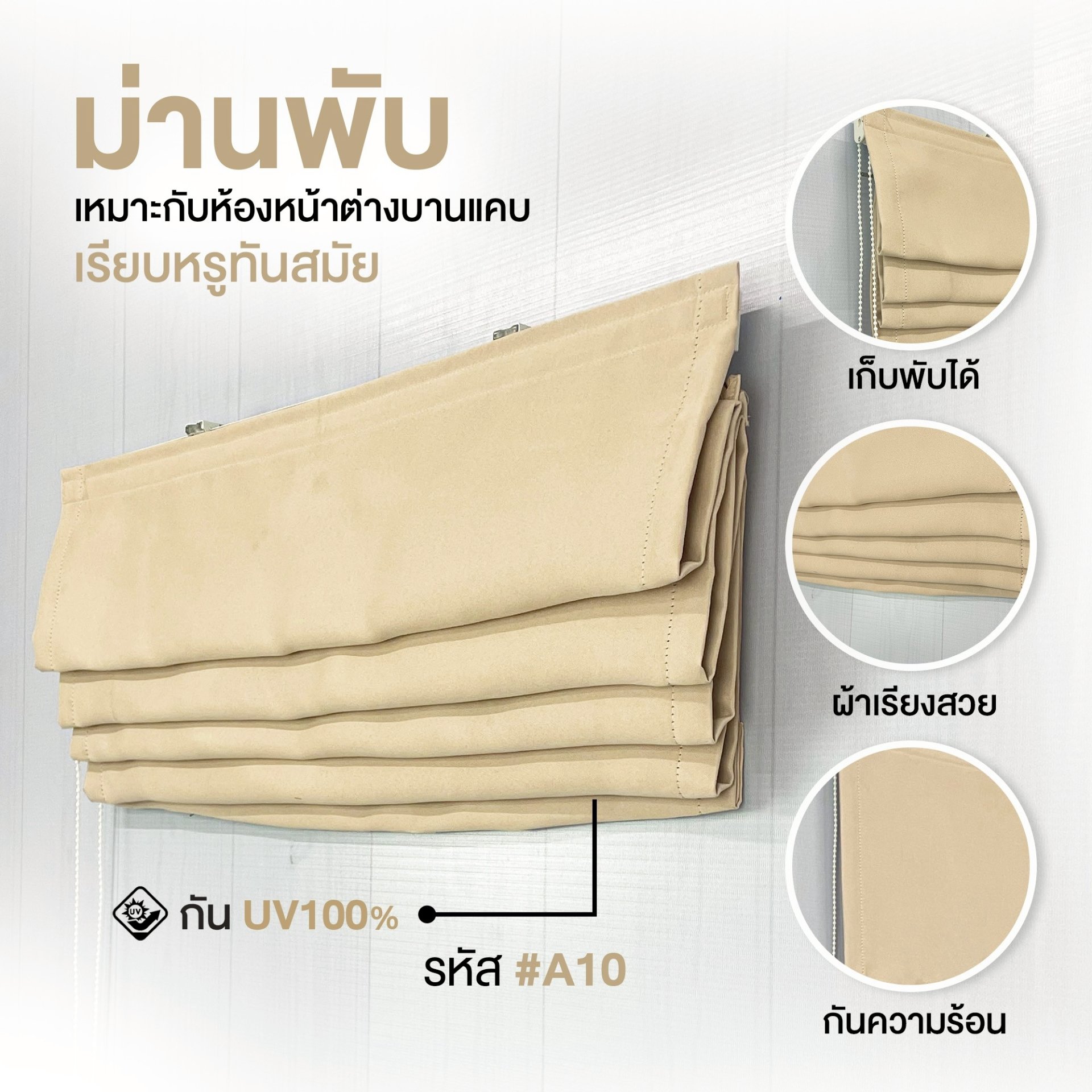 ผ้าม่านพับ สีครีม A10: ความลงตัวของความเรียบง่ายและความหรูหรา