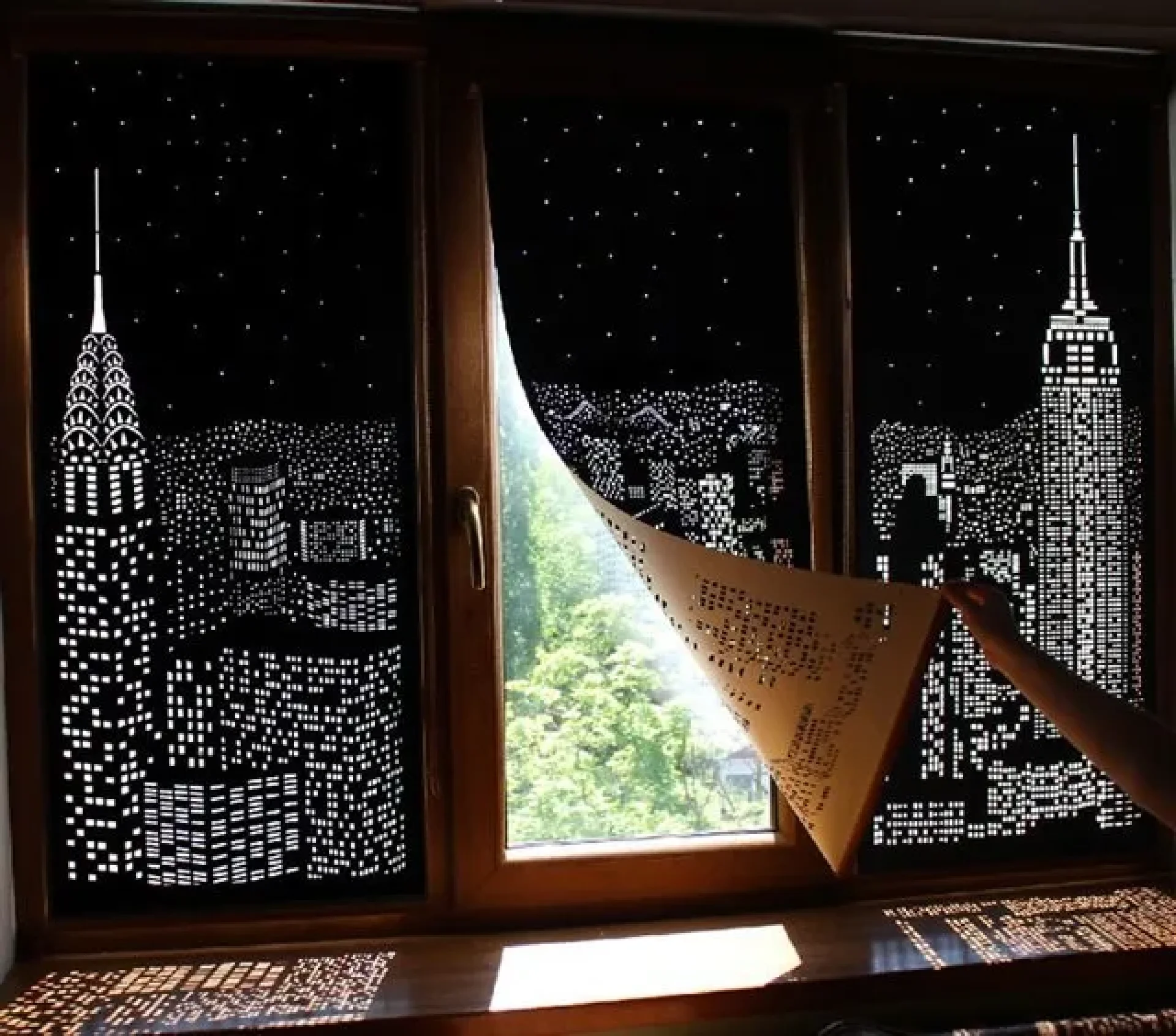 ให้ใช้ม่านโปร่งสีขาวหรือเทาอ่อนด้านใน และม่านทึบสีดำด้านนอก