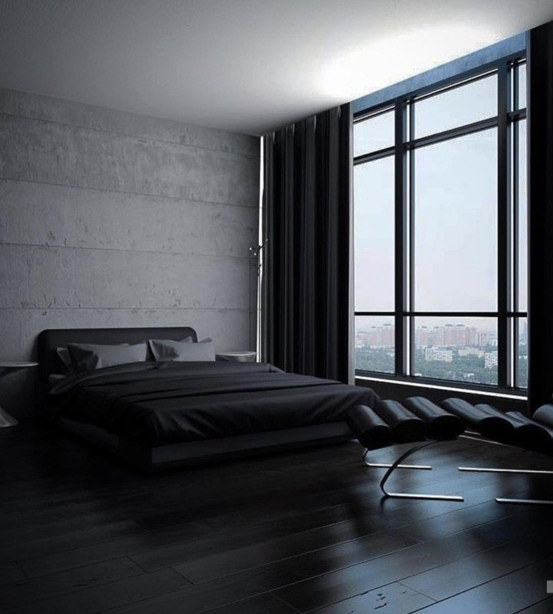 ผนังสีดำ ลองม่านสีขาวสะอาดหรือสีทราย